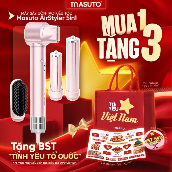 Khi mua các sản phẩm thuộc ngành hàng Masuto Beauty Care, Quý khách hàng sẽ được nhận ngay Bộ quà tặng "Yêu Nước" phiên bản giới hạn gồm nam châm dán, sticker cổ vũ và túi canvas/tote tiện dụng. Những món quà nhỏ bé nhưng mang ý nghĩa lớn lao, giúp bạn thêm rực rỡ trong không khí sôi động của mùa lễ hội.