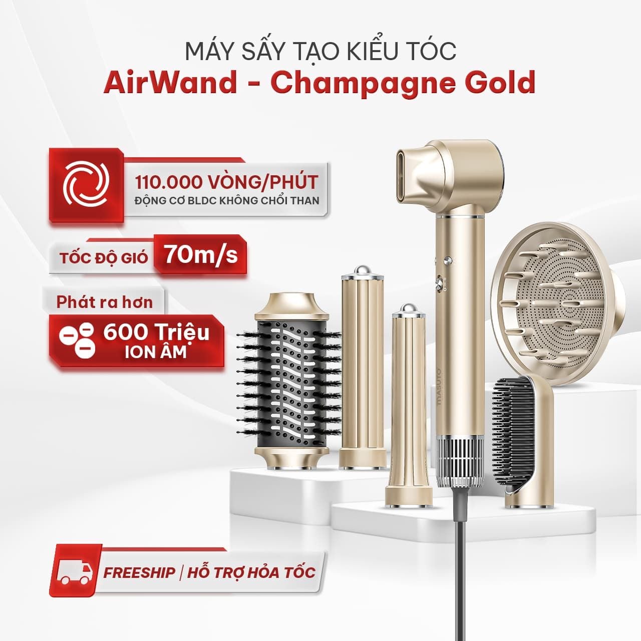 AirWand Champagne Gold là lựa chọn lý tưởng cho người muốn tự tạo kiểu tại nhà mà vẫn giữ được độ mềm mượt, bóng khỏe như được chăm bởi stylist. Thiết kế sang trọng màu Champagne Gold và trải nghiệm sử dụng nhẹ – êm – mát giúp sản phẩm càng thêm nổi bật.