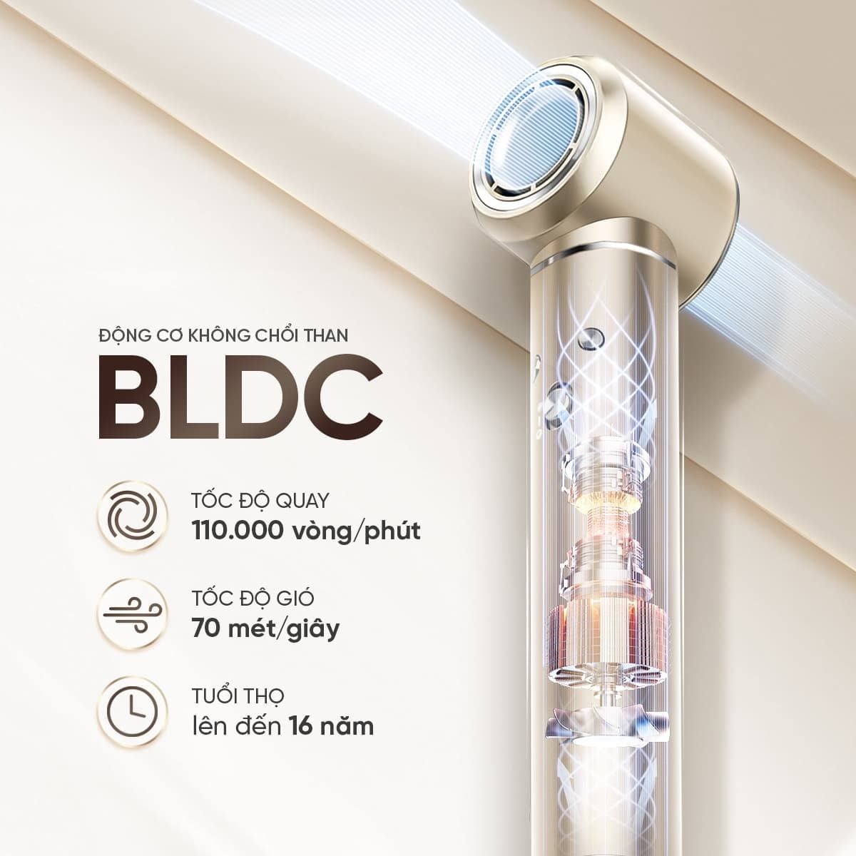 Động cơ BLDC tốc độ cao 110.000 vòng loại bỏ độ ẩm khỏi tóc nhanh chóng và hiệu quả