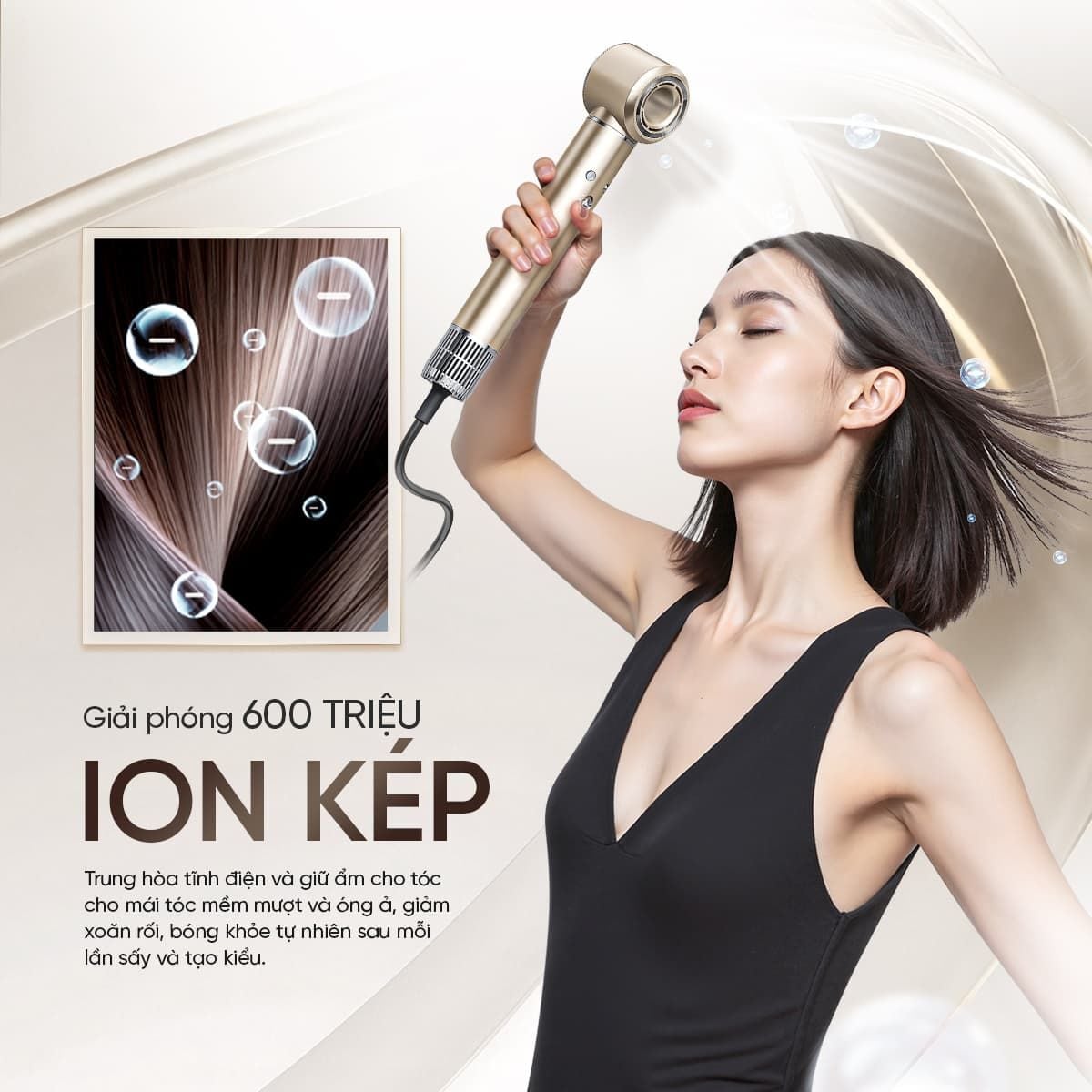 Công nghệ Ion Kép và Coanda Pro : Được nâng cấp để định hình nếp tóc và chăm tóc mềm mượt gấp đôi